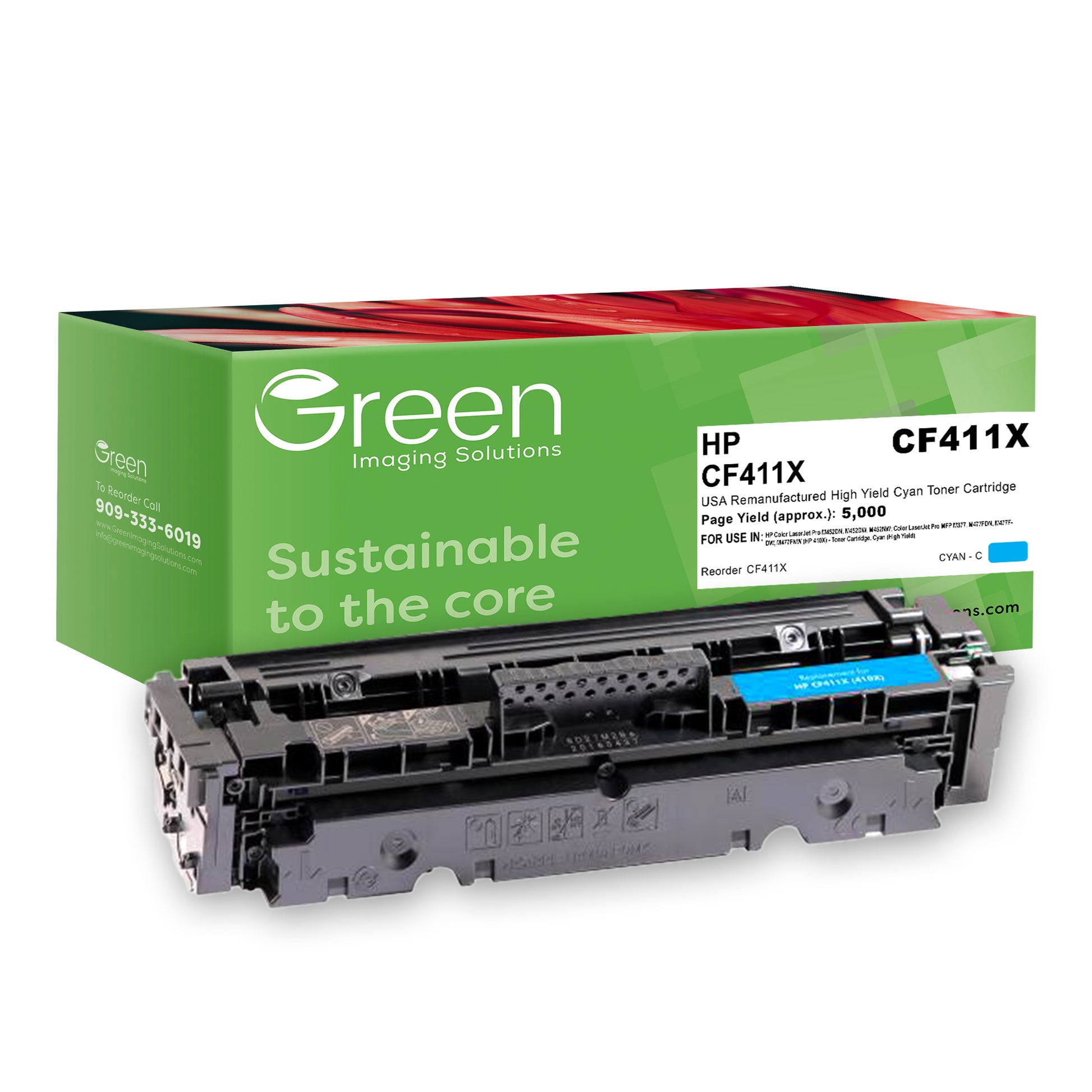 GIS USA Remanufactured High Yield Cyan Toner Cartridge for HP CF411X (HP 410X)