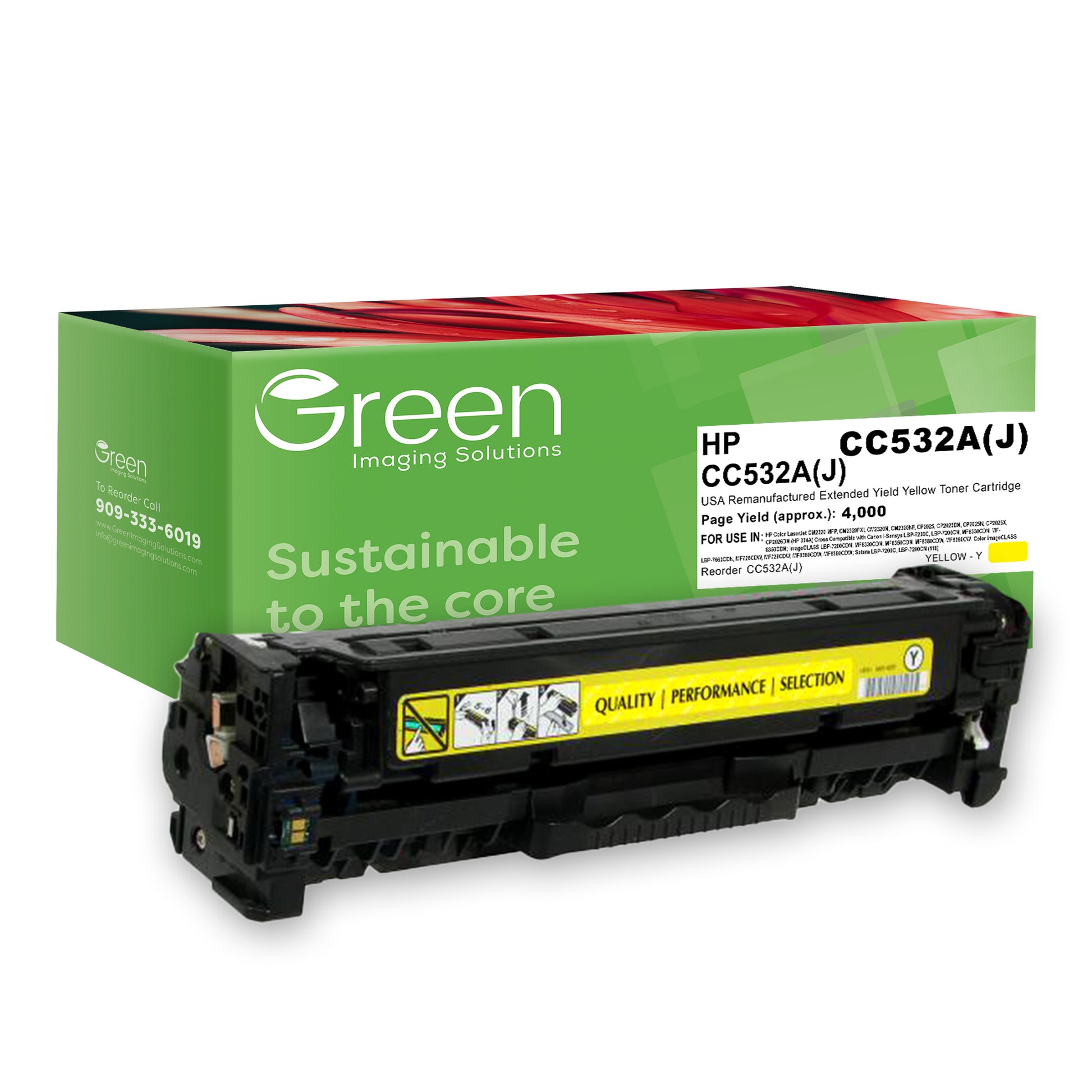 GIS USA Remanufactured Extended Yield Yellow Toner Cartridge for HP CC532A (HP 304A)