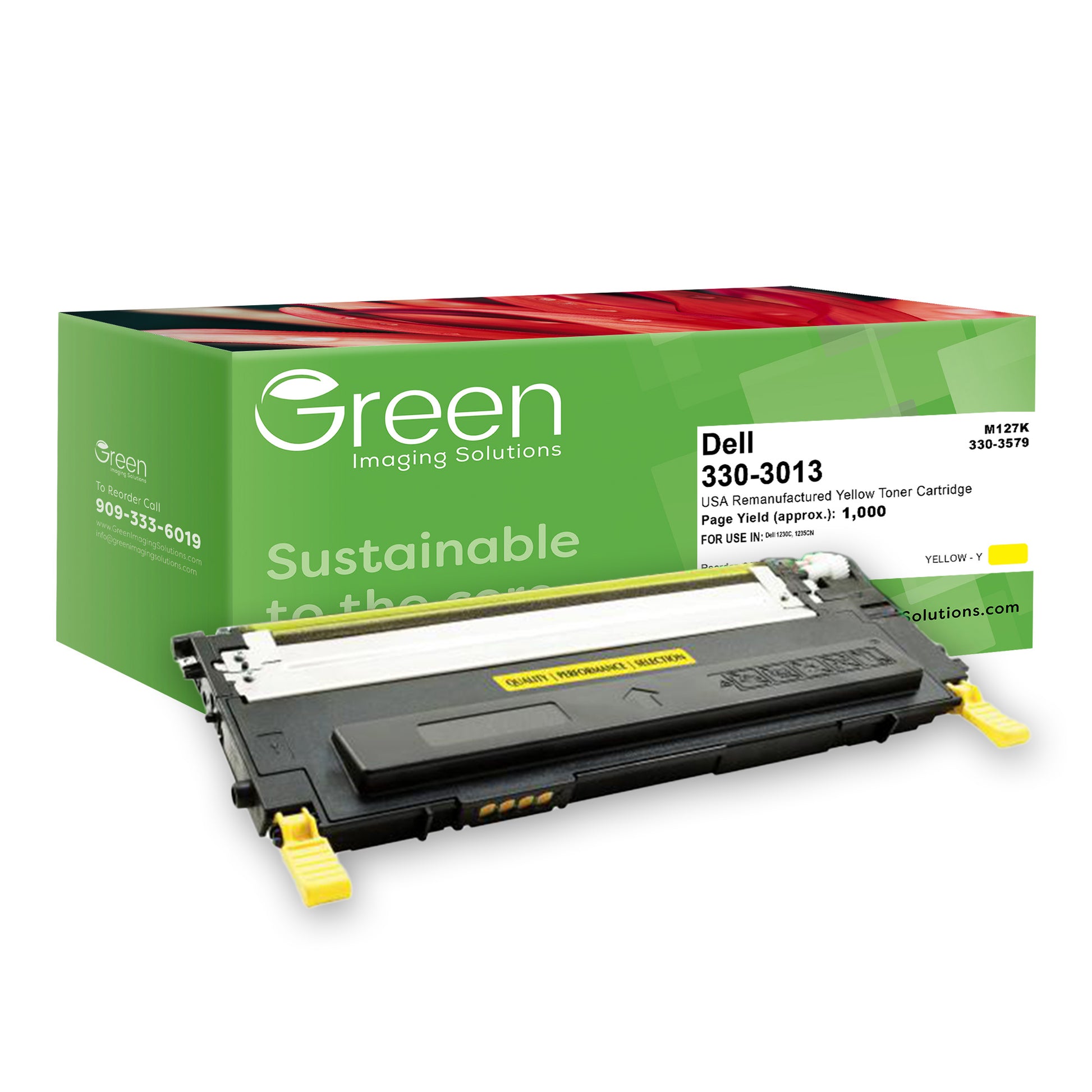 Green Imaging Solutions USA Remanufactured Yellow Toner Cartridge for Dell 1230/1235