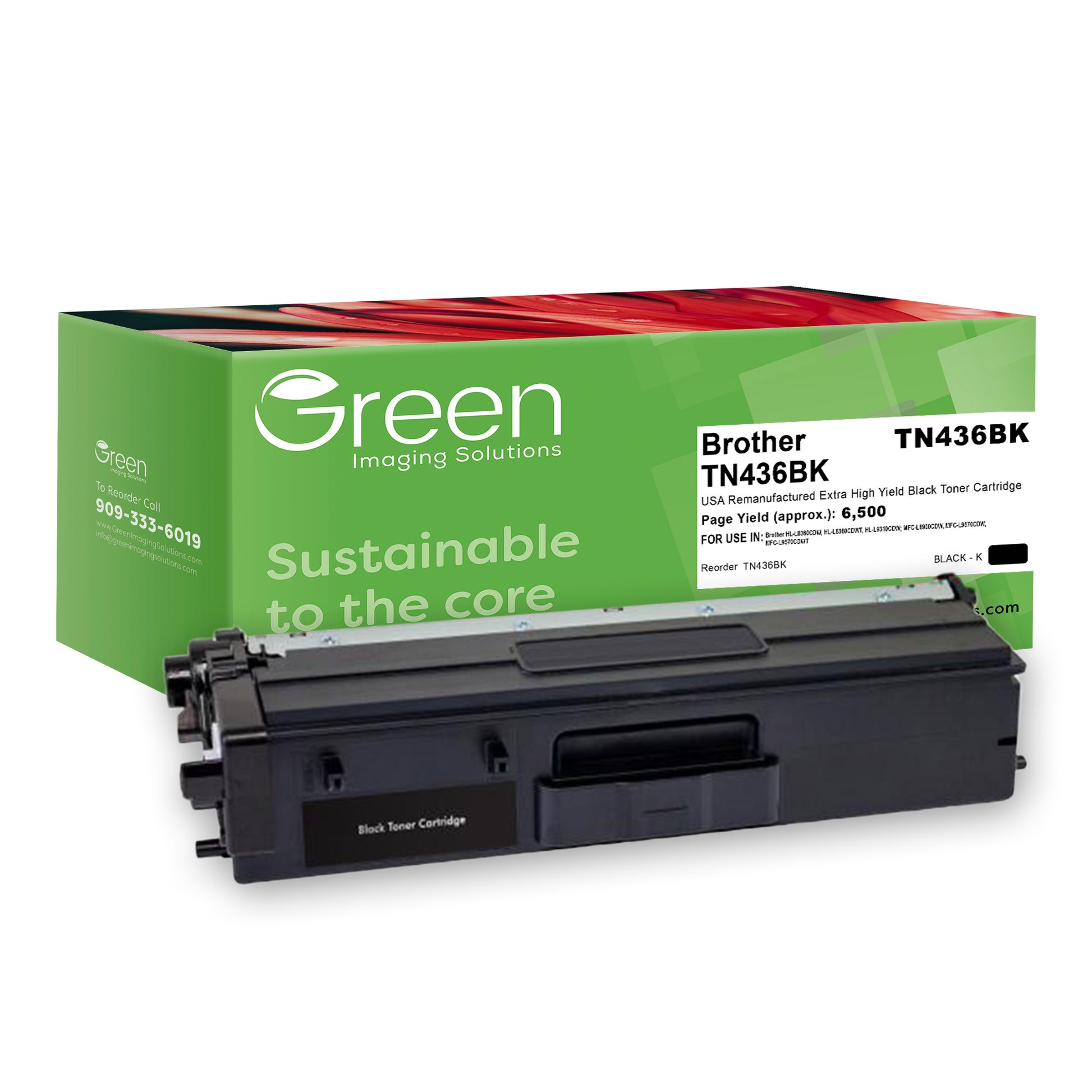 Green Imaging Solutions USA Remanufactured Extra High Yield Black Toner Cartridge for Brother TN436BK