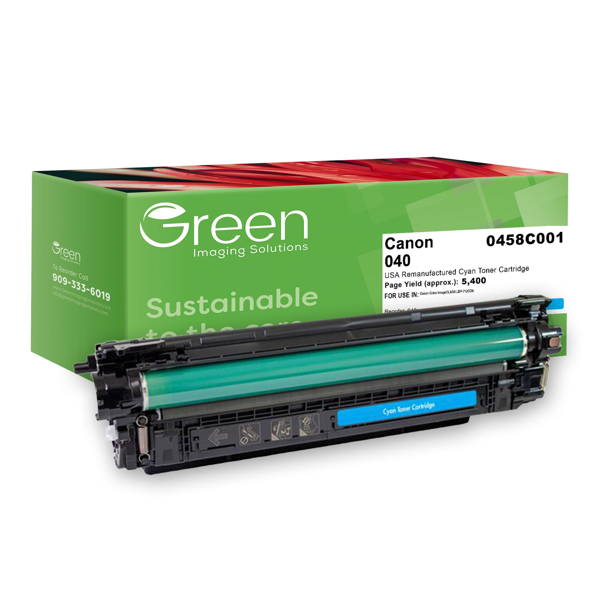 Green Imaging Solutions USA Remanufactured Cyan Toner Cartridge for Canon 0458C001 (040)
