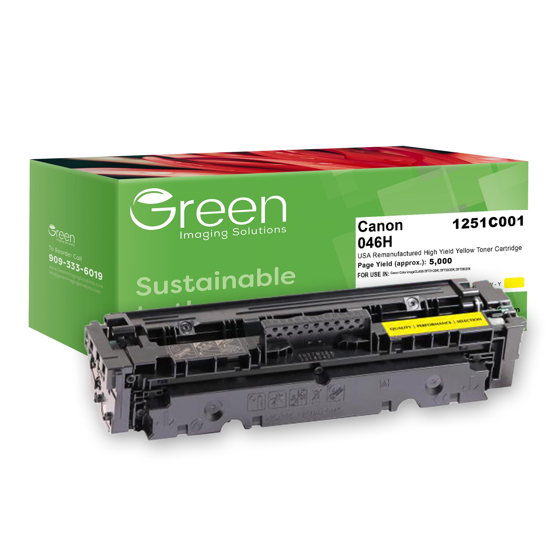 Green Imaging Solutions USA Remanufactured High Yield Yellow Toner Cartridge for Canon 1251C001 (046 H)