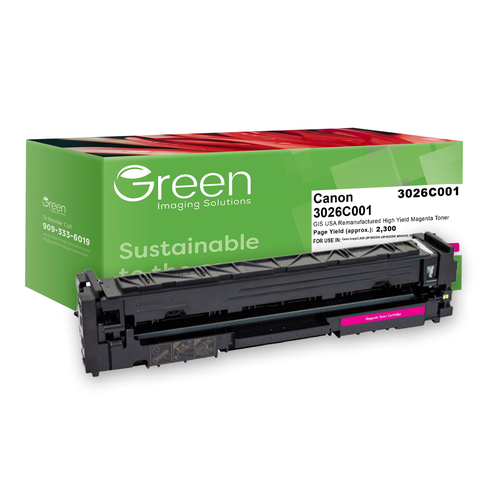 Green Imaging Solutions USA Remanufactured High Yield Magenta Toner Cartridge for Canon 054H (3026C001)
